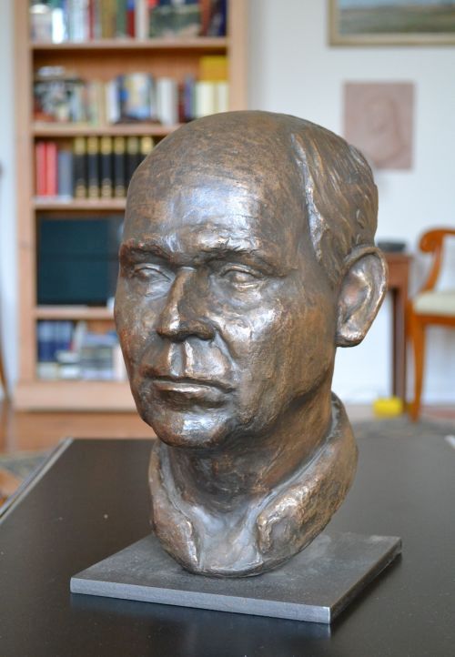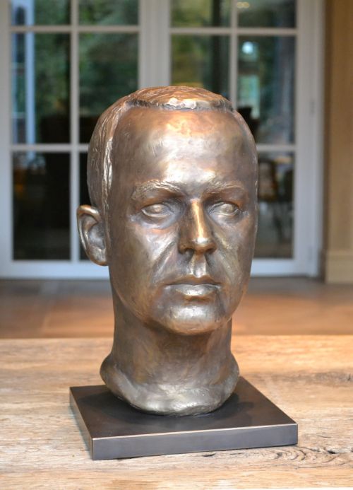 The bust portrait is modelled in clay; once completed, a plaster cast is made from the portrait. This reworked plaster cast is used to make a silicone mold which