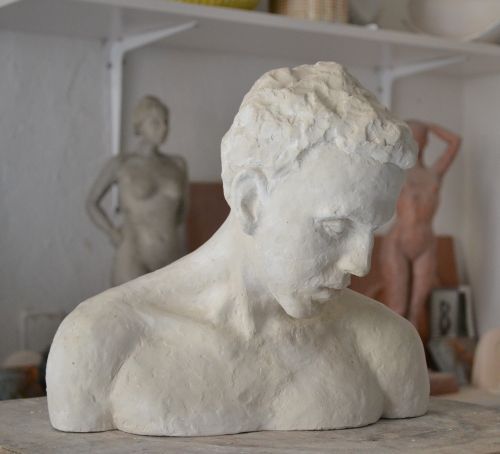 I model a bust portrait in several sittings by observation. The sittings take place in my studio, or on request I can come to your home or to your
